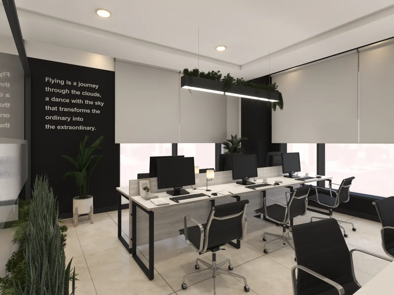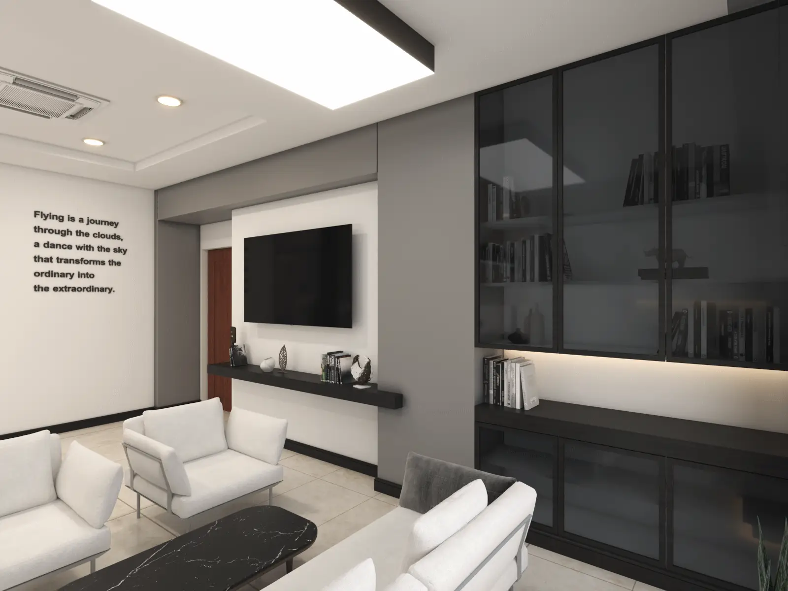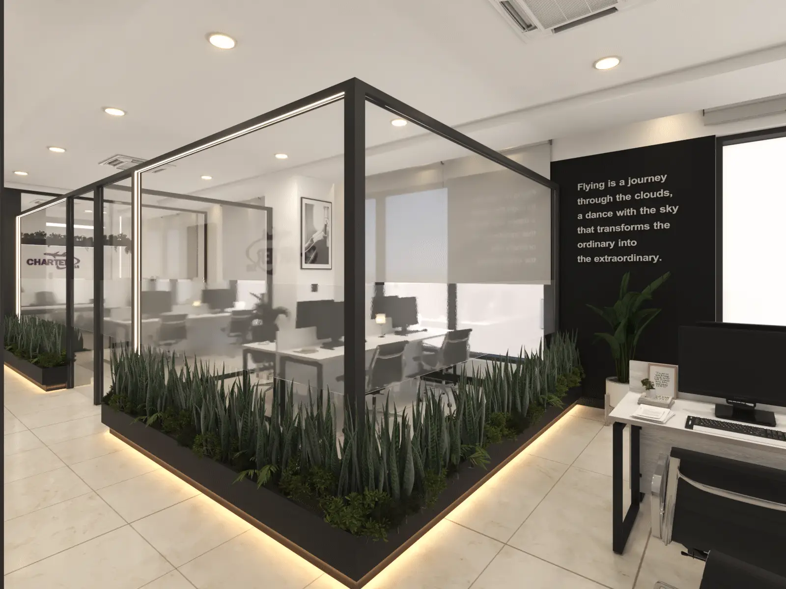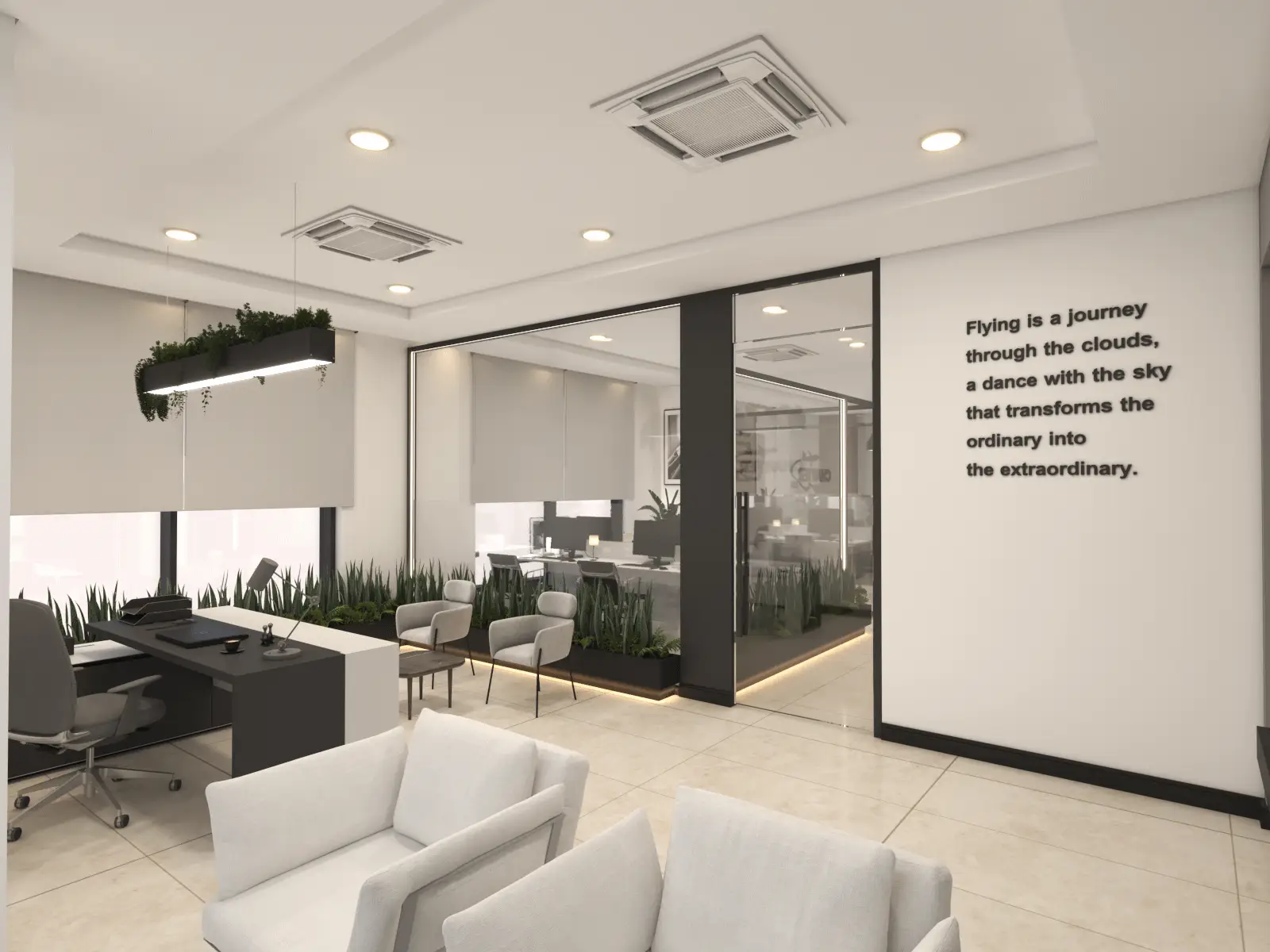 با توجه به درخواست کارفرما، این فضا جهت دفتر یک آژانس هواپیمایی در نظر گرفته شد. از این رو طراحی داخلی پروژه باید به گونهای انجام میشد که علاوه بر پاسخگویی به نیازهای عملکردی، حس پویایی، نظم و آرامش بصری در محیط کاری را نیز تقویت کند جرا که طراحی داخلی و حسی که فضا منتقل میکند اثر مستقیم بر نحوه عملکرد و راندمان کاری کلیه پرسنل دارد.
