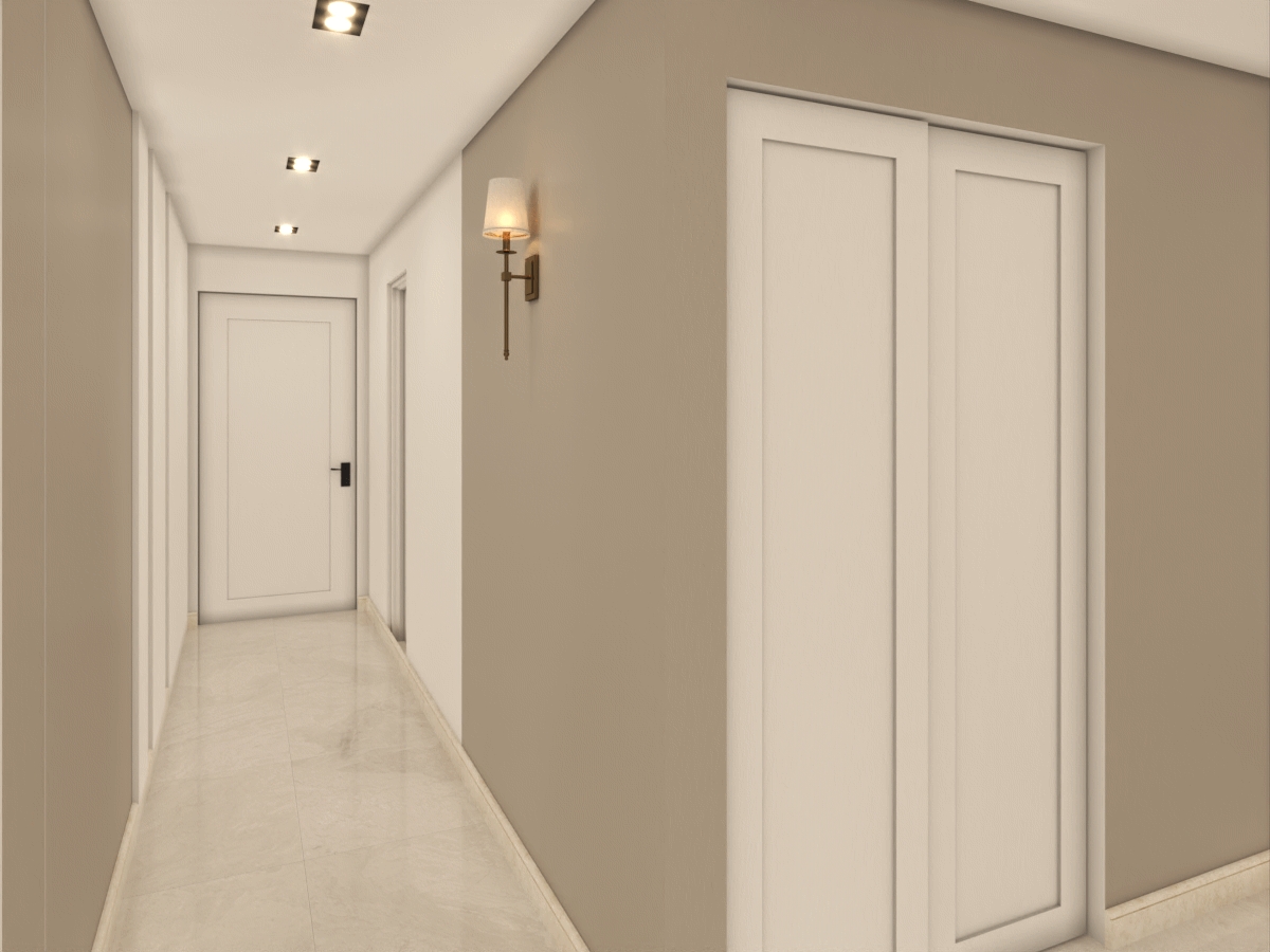 - ایجاد کلوزت، سرویس بهداشتی، لاندری و طراحی کمد در ورودی در کنار آینه و کنسول برای تعریف بهتر مسیر ورودی.