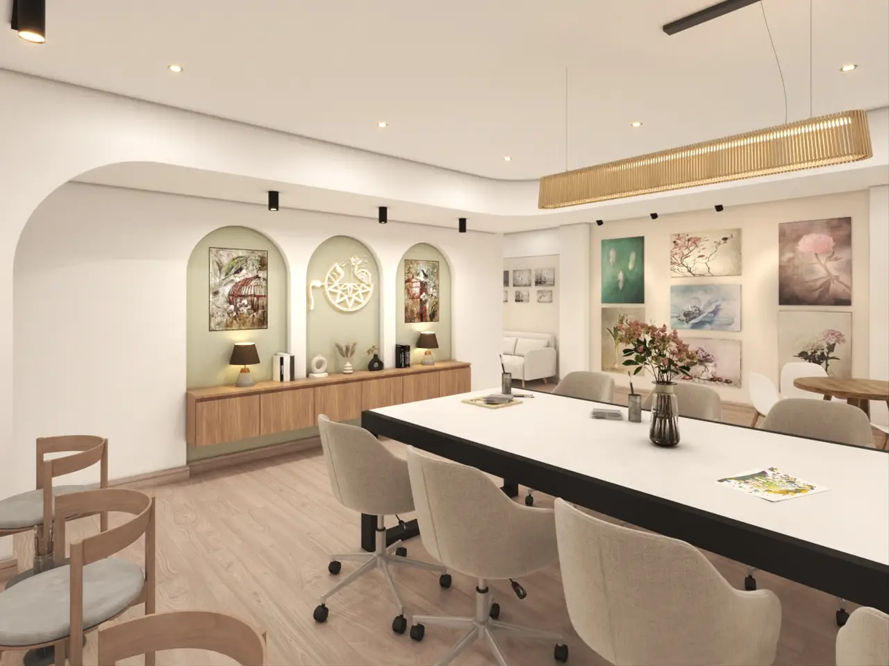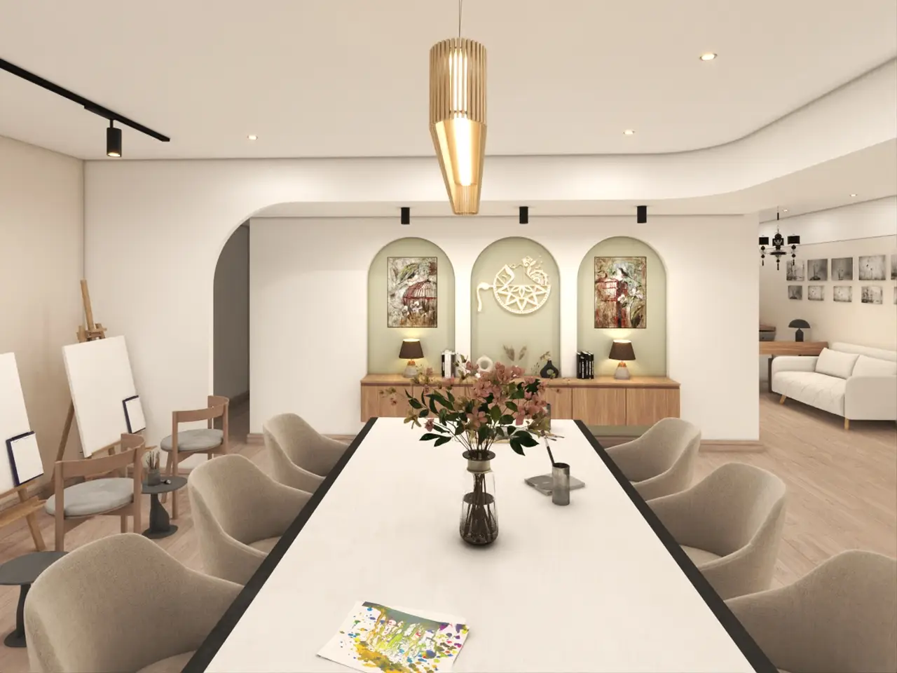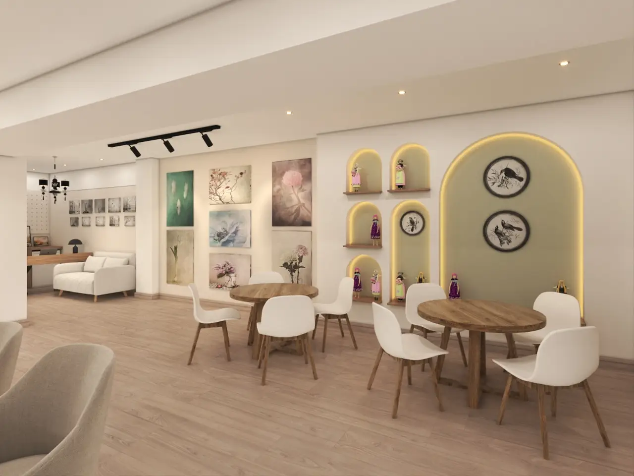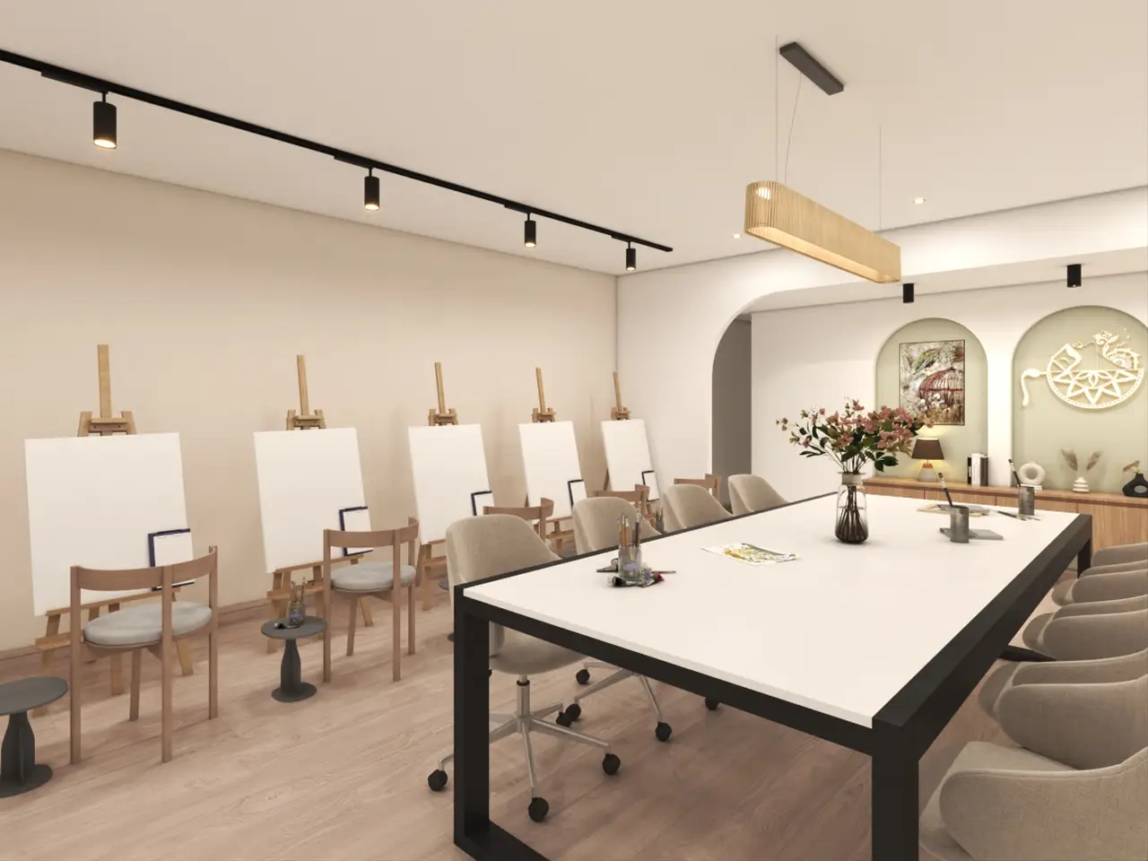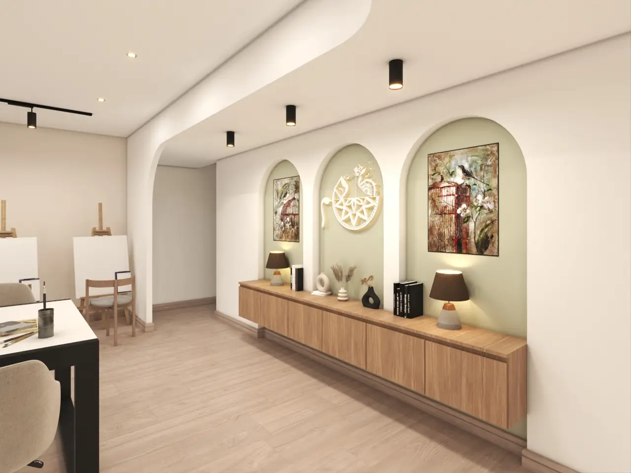 موقعیت: قشم، ایرانکاربری: آموزشگاه و گالری نقاشیزیربنا: ۸۰ مترمربعاستودیو طراحی: استودیو معماری مفیدی دیزاینمرحله همکاری: طراحی داخلی و بازسازی کاملسبک طراحی: مدرن با رویکرد هنری و مینیمال